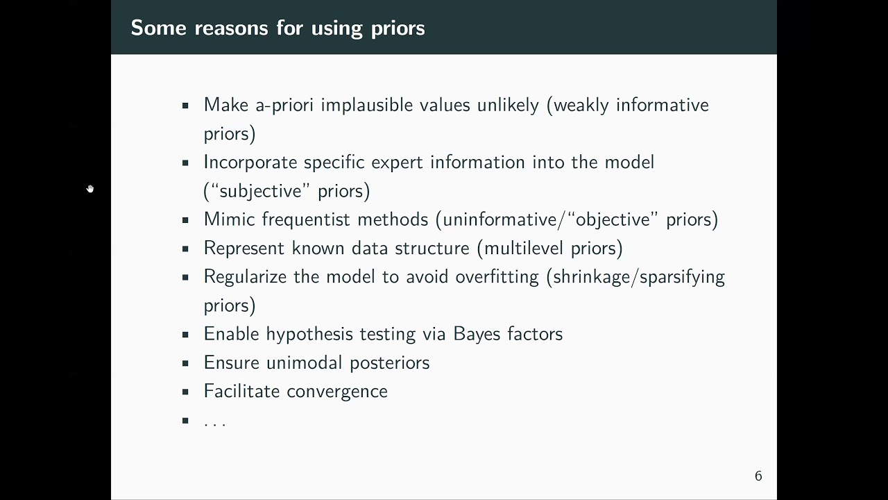 - A talk by Paul Buerkner on priors, which gets into the complexity of setting priors in high dimensional models.